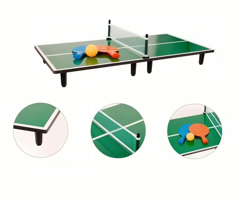 | Details | 1 Mini Table Tennis Table, 2 wooden ping pong bats, 1 Yellow PP ball, 1 Post and Net |